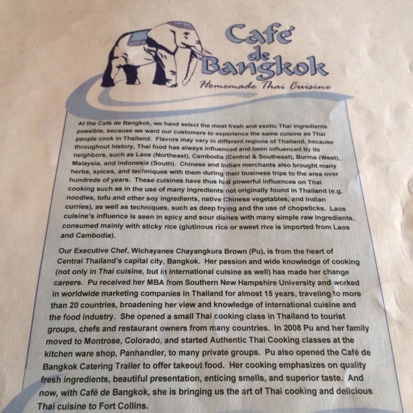 First time orders get 10 off and earn 5 off every 100 spent. Choice of seafood with mint leaves lemon grass lime juice tomato red onion cilantro chili paste with Thai hot chili. Café de bangkok in fort collins welcomes you to come learn explore and eat some of the best thai food in fort collins.